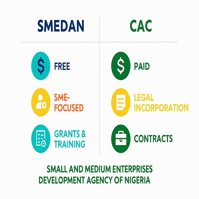 Unlike CAC, which charges for incorporation, SMEDAN is a government initiative designed to support Nigerian entrepreneurs at no cost.